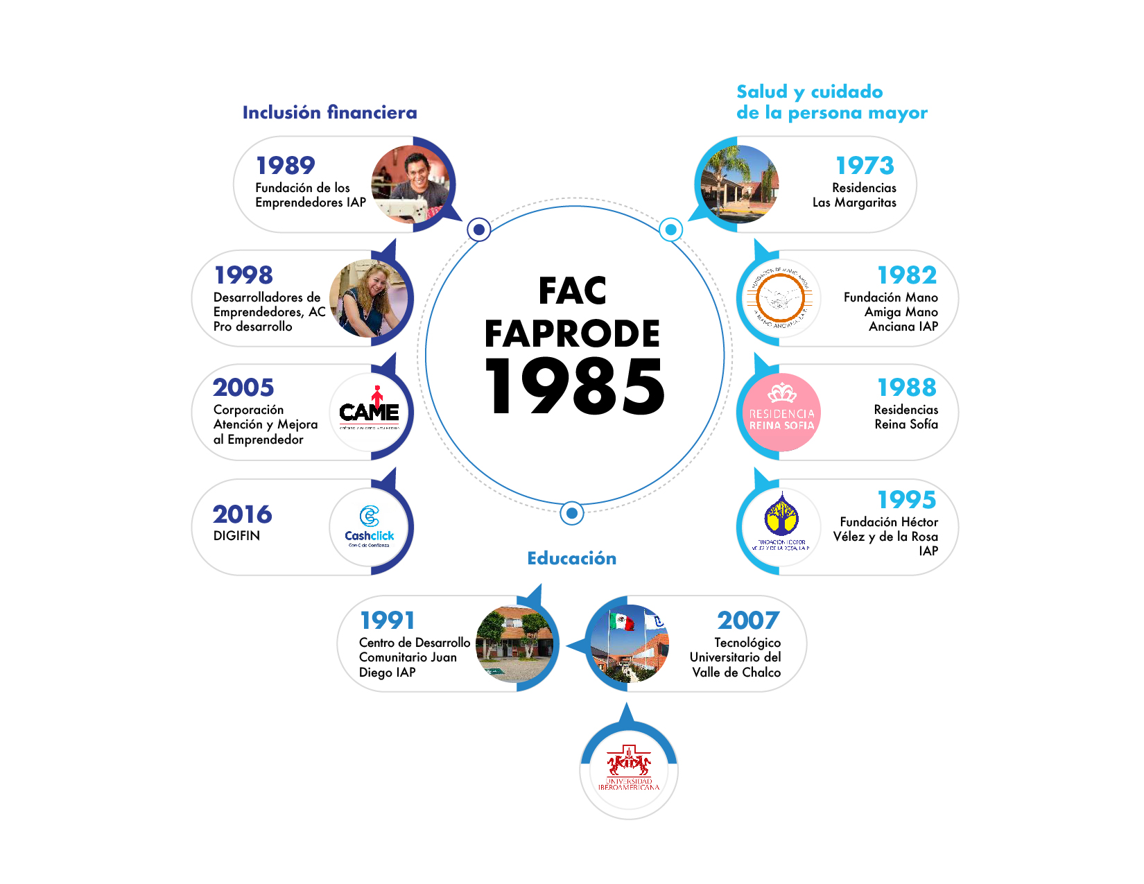 Nuestra historia empieza en 1985 cuando el terremoto sacudió y destruyó gran parte de la Ciudad de México; entonces, la Sociedad Civil se unió y se crearon grandes Asociaciones para ayudar a damnificados. Nosotros creamos FAPRODE, Fondos para la Asistencia, Promoción y Desarrollo, impulsado por el P. Enrique González Torres, S.J.